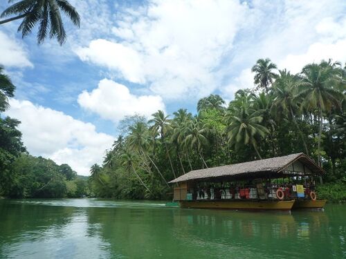 明け方くらいから結構本降りになっていたので心配したが、小降りになり11時前くらいには一応雨も止んだ。そして昼位には晴れ間が見えてきた。すると今度は暑い!■本日ツアー:血盟記念碑→ロボックリバークルーズ→ターシャ→(マンメイドフォレスト)→チョコレ…