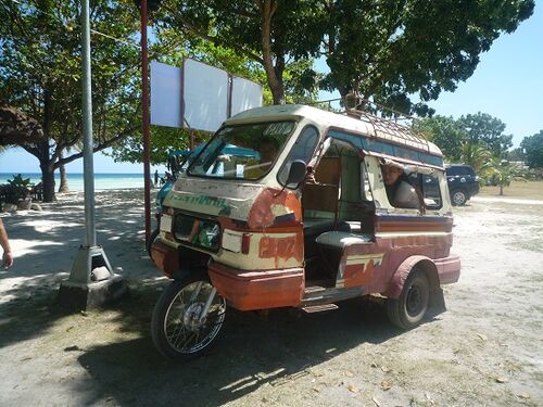 ボホール島のタグビララン市内を外れてある程度のあたりからトライシクルの形が変わる。郊外ではこのように、マルチキャブとトライシクルの間のような客席の作りのが走っている。8人か無理したら10人は座れそう。私はこのタイプには乗ったことはないが、昨日…