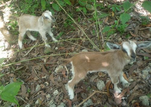 ■子ヤギ命名 玄(ゲン)ちゃん(後ろ:オス)と米(マイ)ちゃん(前:メス)2匹合せて玄米ちゃん。■ガオ■ニャー子